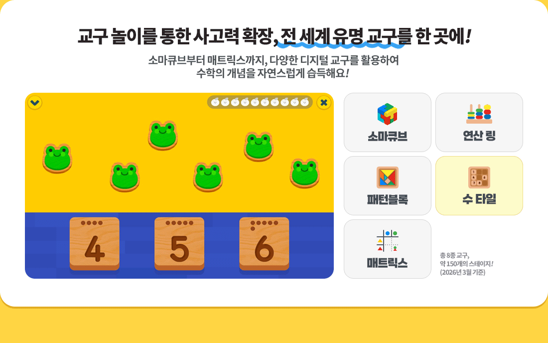 ¼ö °³³ä¡¤¿¬»ê¡¤³í¸® »ç°í±îÁö, À¯¾Æ ¼öÇÐÀÇ ±âÃʸ¦ Àڽۨ ÀÖ°Ô ½×¾ÆÁÝ´Ï´Ù.
